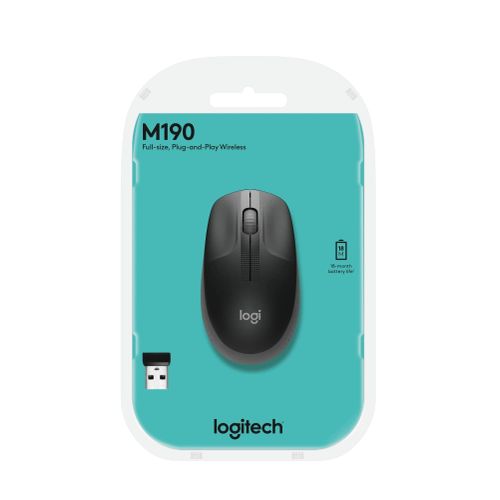 Logitech M190 Full-Size Wireless Mouse – Charcoal-(910-005913)