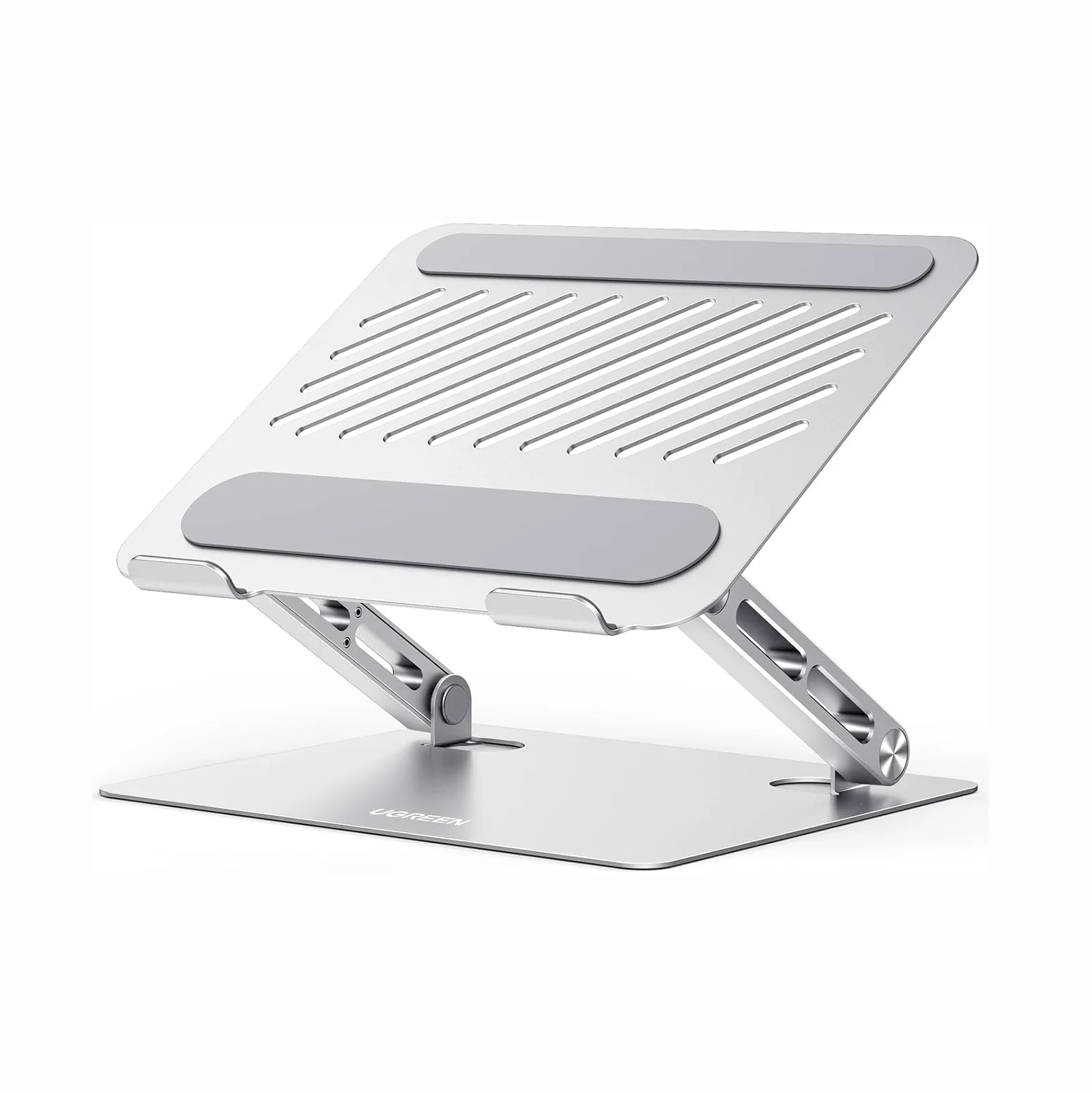 The UGREEN LP866 Full Angle Hover Adjustable&Foldable Holder Laptop Stand features ergonomic height adjustment, sturdy aluminum construction, enhanced ventilation, and wide laptop compatibility — ideal for improving posture, cooling and workspace organization.